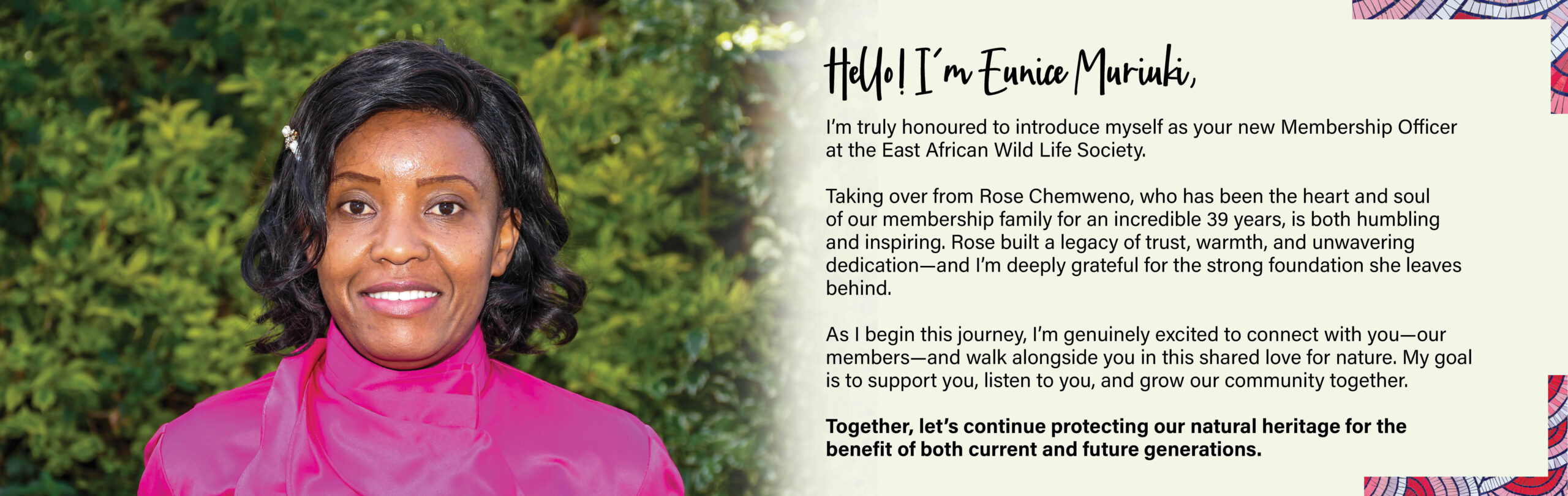 Becoming a member of the East African Wild Life Society is a great way for you to promote the sustainable use of natural resources and help conserve the region’s iconic species for the benefit of current and future generations. Your contribution offers you an opportunity to contribute towards the restoration and safeguarding of wildlife habitats in East Africa